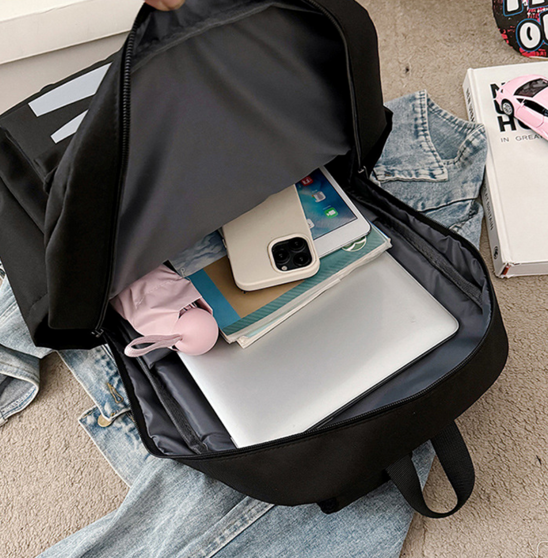 - Balo có thiết kế nhiều ngăn rộng rãi để được máy tính lên đến 15.6 inch, điện thoại, máy tính bảng, cặp sách, sổ sách vv.