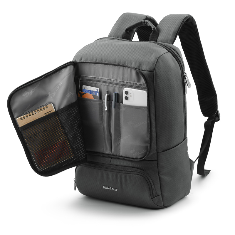 Balo Mikkor có quai xách và quai đeo vai được đệm dày êm giúp bạn cảm giác rất thoải mái khi đeo hay xách balo hàng ngày, dây đeo vai dày có thể điều chỉnh nới/thu theo chiều cao người dùng vô cùng tiện lợi. Ngoài ra, thân sau đệm dày và êm trên nền lưới Airmesh thoáng nhiệt tạo sự êm ái và thoải mái khi đeo, phía sau cùng được thiết kế một dây đai để gắn tay kéo va li, giúp cho những chuyến công tác của bạn trở lên đơn giản và gọn nhẹ hơn.
