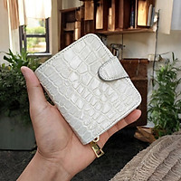 Ví gập 2 nữ đựng Tiền đựng Thẻ thoải mái. Da bụng cá sấu bạch tạng 1 tấm!