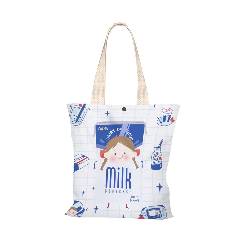 Giới thiệu [Mã FASHIONT4WA2 giảm 10K đơn 50K] Túi Tote vải Canvas Hình Cô Bé Sữa Milk đáng yêu trên nền vải trắng.