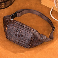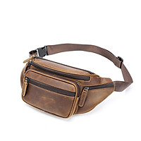 Túi Đeo Chéo, Túi Đeo Bao Tử Nam Chất Liệu Da Bò Thật Màu Nâu Bò ( BH - 12 THÁNG)