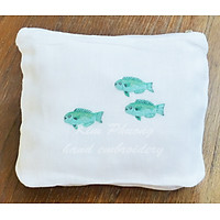 Túi mỹ phẩm thêu tay - 3 cá két xanh lá