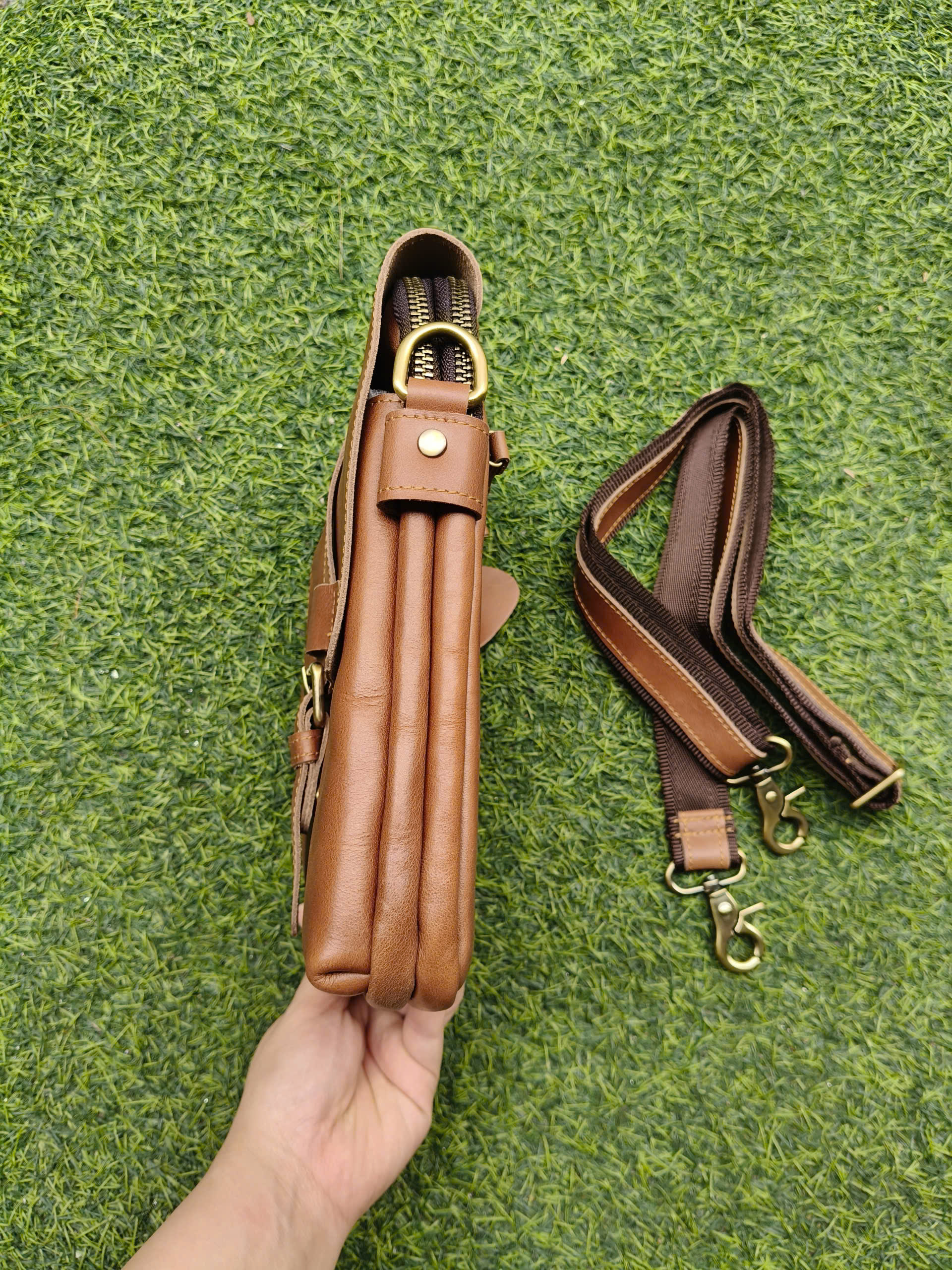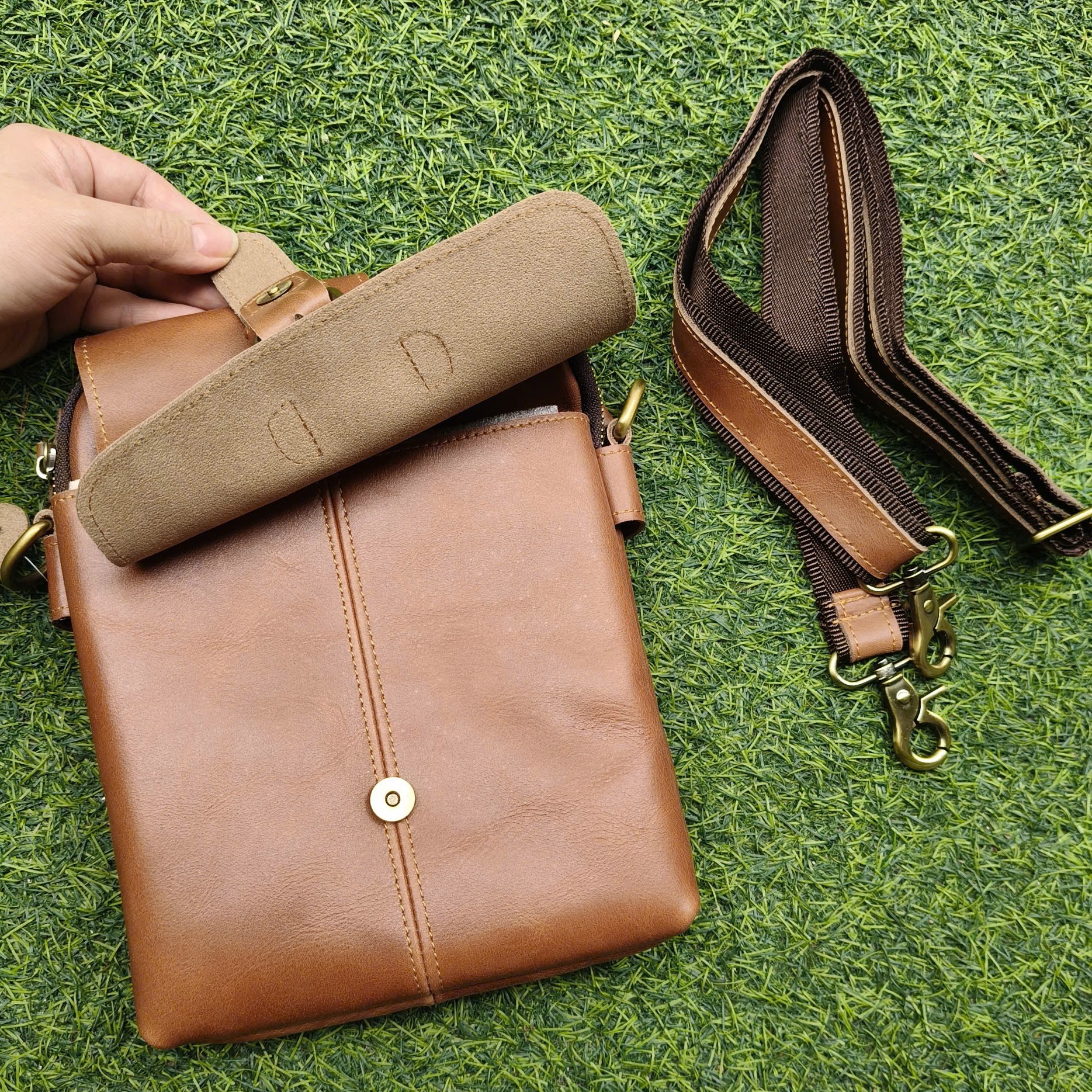 TÚI ĐEO CHÉO NAM DA BÒ THẬT BHM1068 – NHỎ GỌN NHƯNG CỰC KỲ TIỆN LỢI