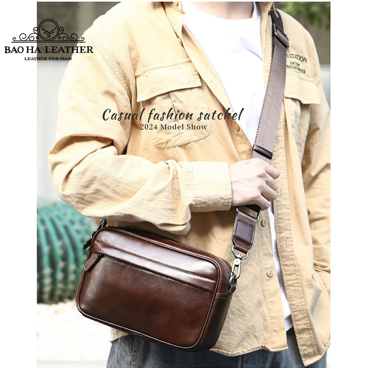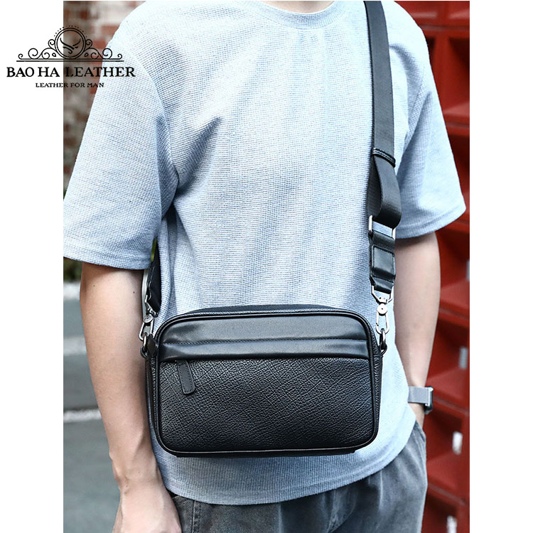 Túi đeo chéo nam ngang nhỏ gọn cao cấp BHM6189 Khá tiện dụng với thiết kế hình hộp chữ nhật gọn gàng cùng màu đen đơn giản dễ dàng kết hợp mọi phong cách thời gian.
