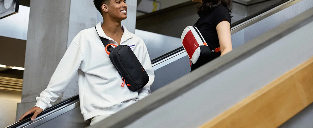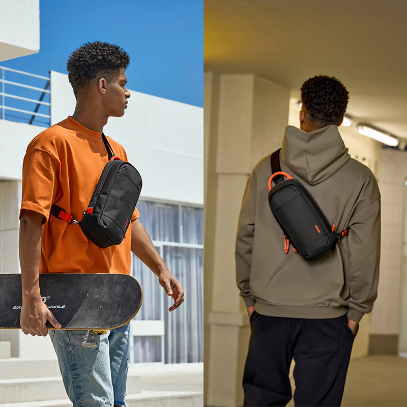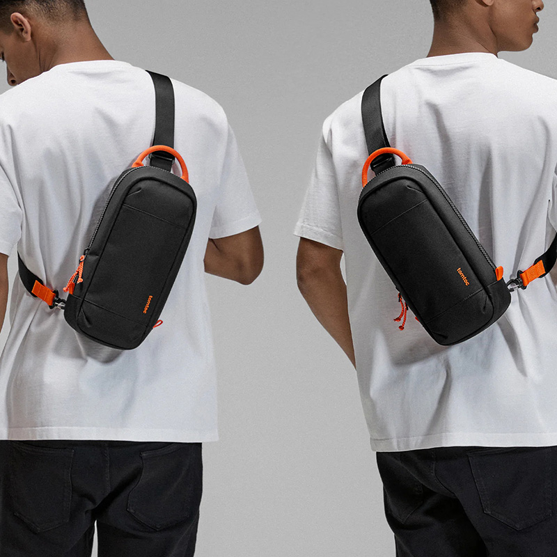 Hai móc khóa dưới đáy túi cho phép bạn chuyển đổi linh hoạt giữa đeo vai trái và phải. Thiết kế mở vỏ sò bán cứng giúp truy cập nhanh thiết bị, phù hợp khi bạn di chuyển, đi chơi hay thư giãn cùng bạn bè.