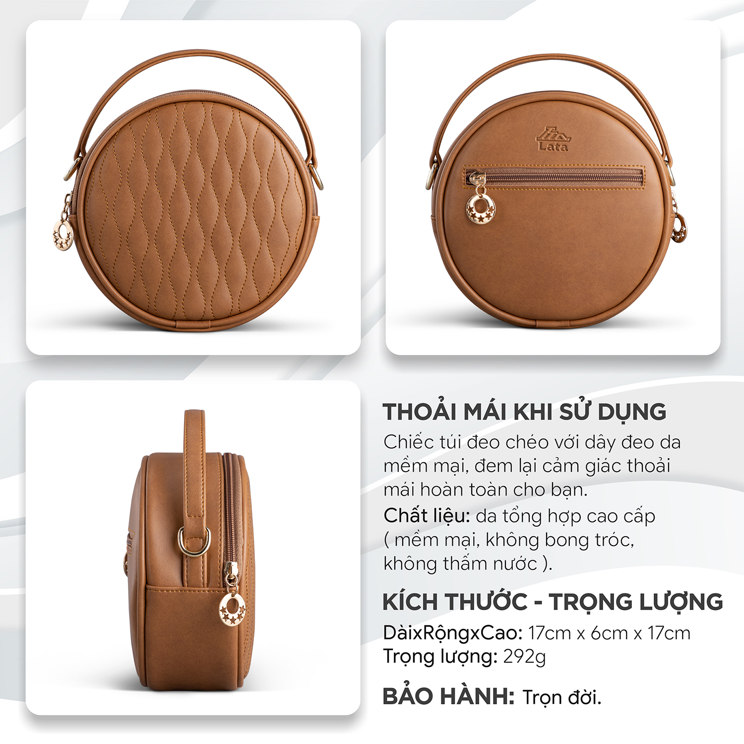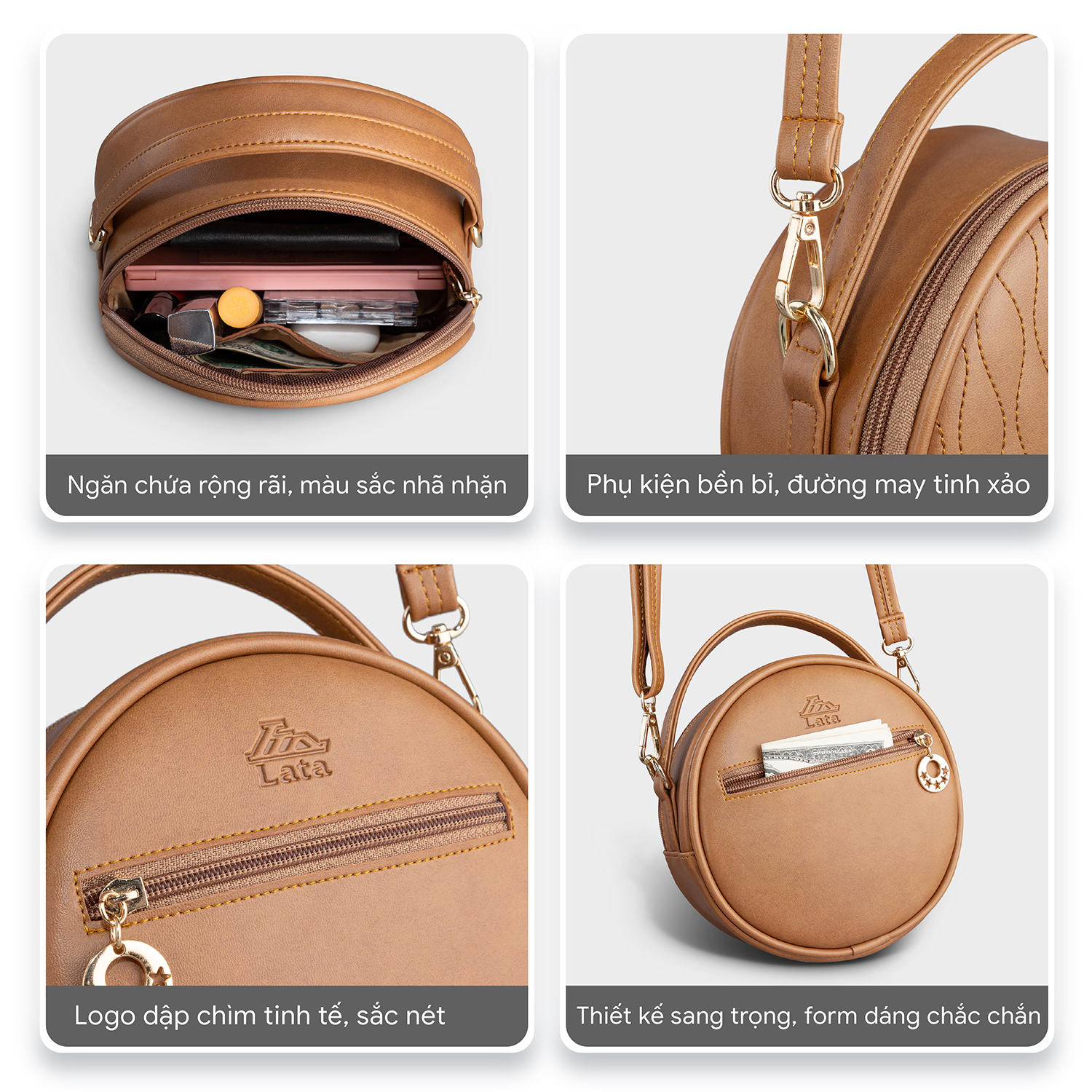 Túi đeo chéo nữ dáng tròn họa tiết dập chỉ Lata Mellow HN95 với chất da mềm mại cùng họa tiết lượn sóng đem lại cho bạn vẻ ngoài yêu kiều và đằm thắm. Size túi trung bình đáp ưng đủ nhu cầu lưu trữ các đồ dùng cá nhân thường ngày. Kết hợp chiếc túi này cùng outfit đi làm hoặc dạo phố để nổi bật hơn giữa đám đông.