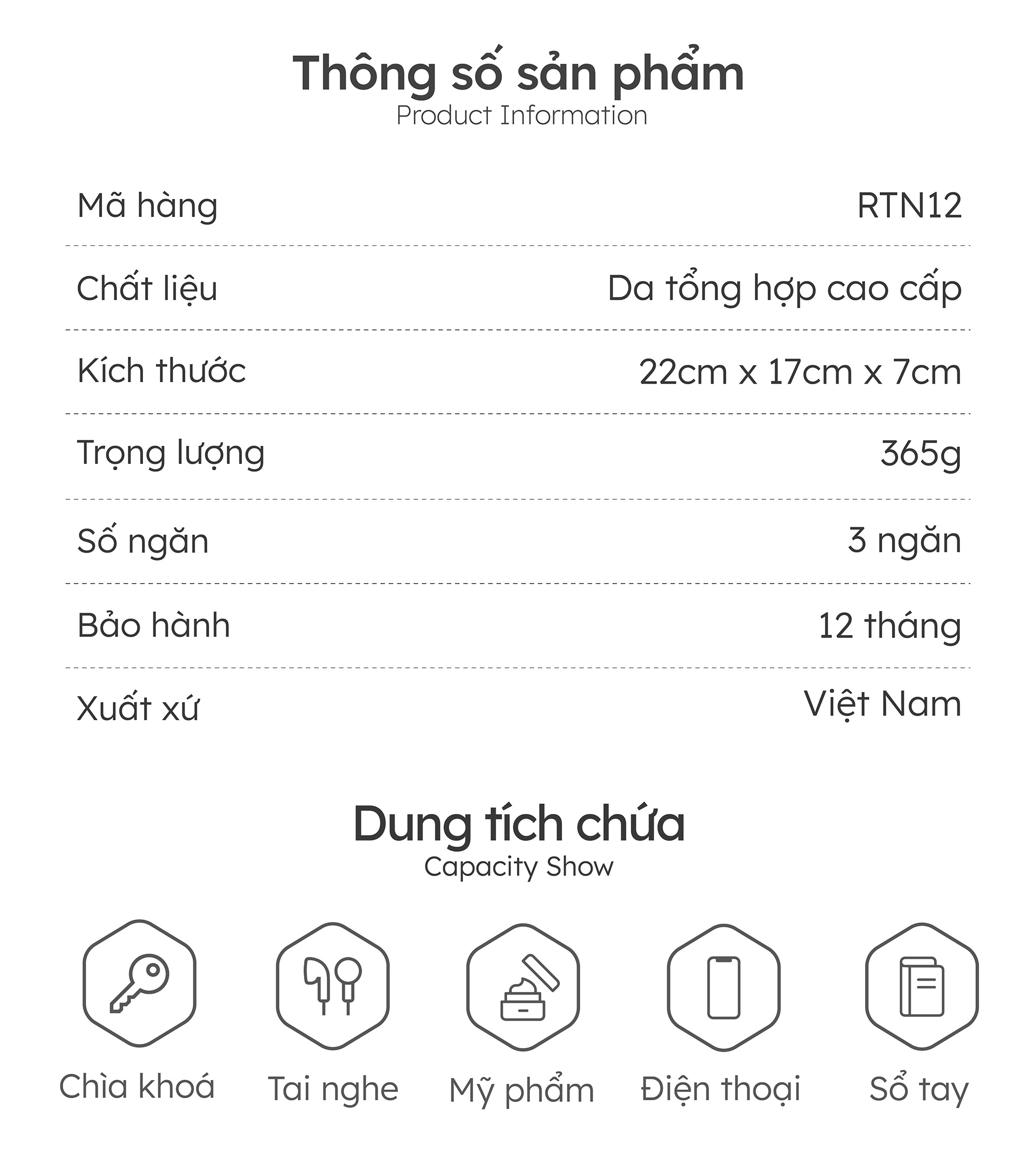 - Công dụng: Đựng ví tiền, điện thoại, sổ tay, sạt dự phòng, kí