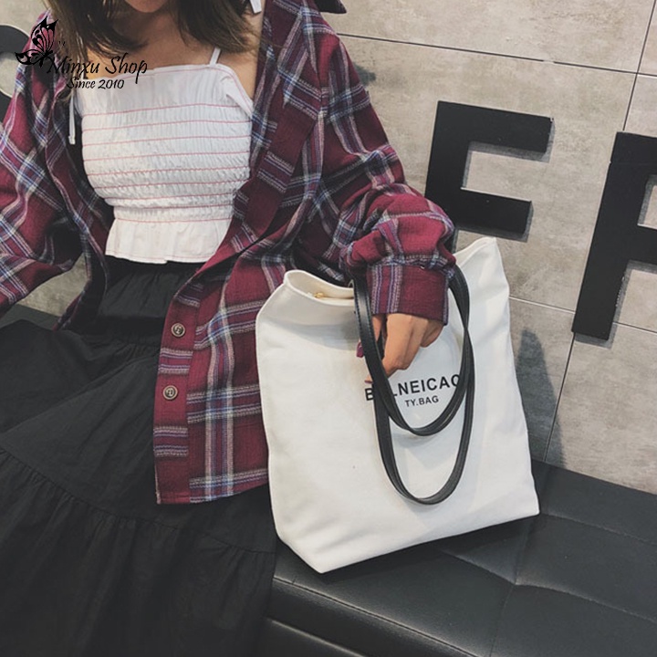 Giới thiệu Túi vải canvas, túi đeo chéo loại to thời trang, đi học, đi chơi trẻ trung BALNEICACA TV42