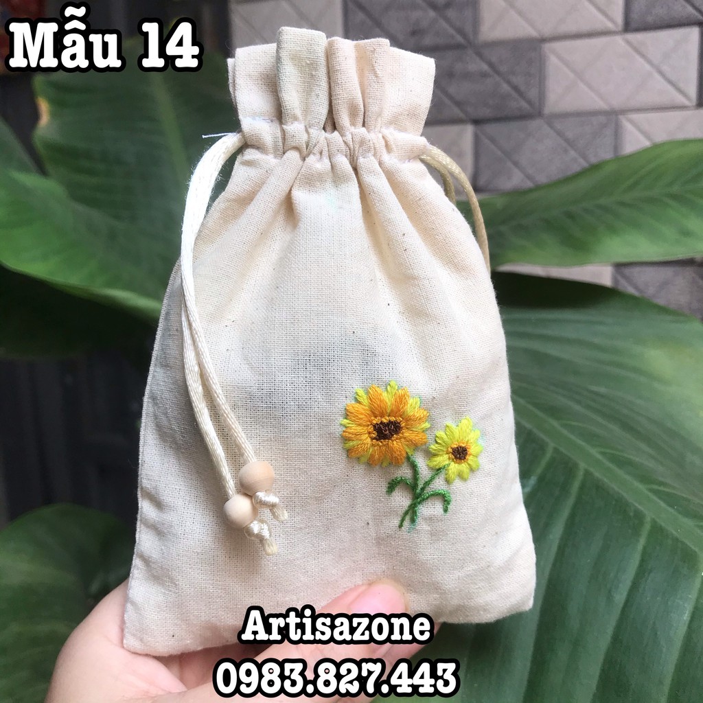 Du lịch & Hành lý > Túi du lịch > Túi dây rút || Túi vải dây rút thêu hoa mini, kích thước: 10cm x 15cm (Vải thô mộc) - 01 chiếc - (Đọc kỹ mô tả sản phẩm)