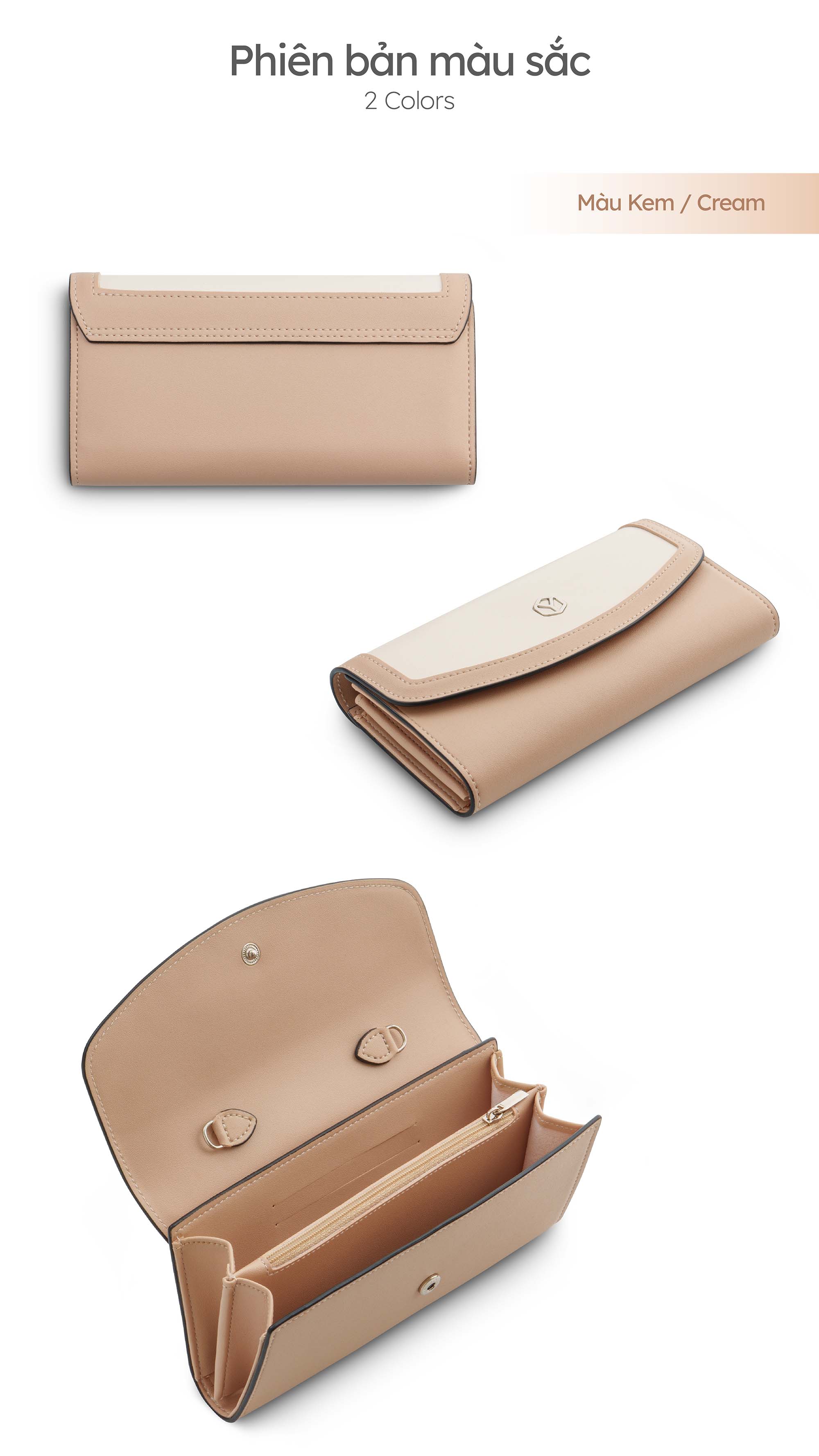| Model | Ví da nữ cầm tay kèm dây đeo chéo phối màu |